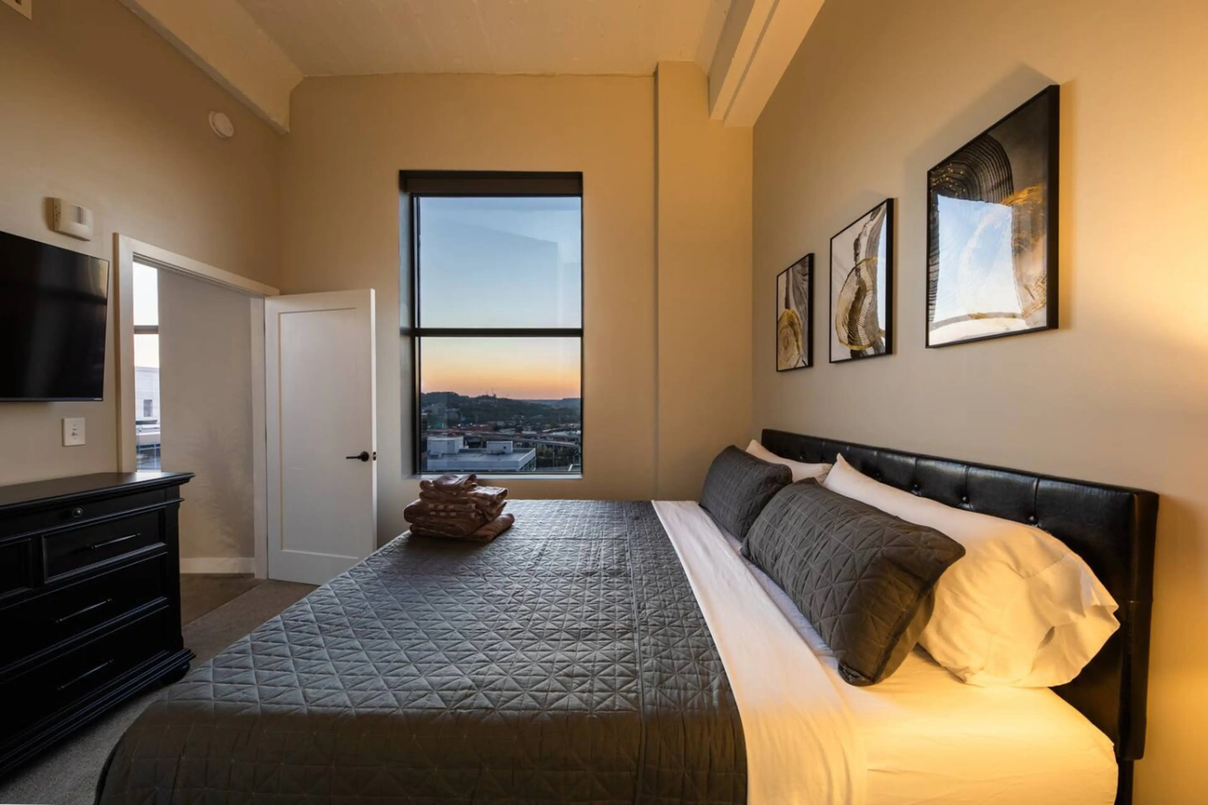 Fantastic getaway in the middle of everything! Beautiful views, wonderful amenities, easy and convenient parking. Sunlight all day, and great city views at night.Sky deck was fantastic, beds were comfortable. Absolutely a wonderful experience for my wife and me.Thank you for a great experience!